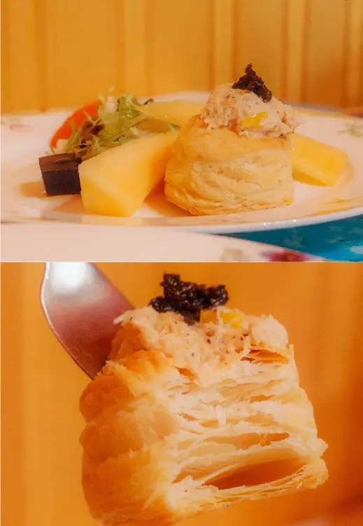 【前菜】兩款前菜配料都大同小異~ 第一次食紅酒啫喱🍷 粒粒自家製、味道唔太濃烈唔嗆口✨ 入口Q彈,新體驗幾有趣!黑松露醬配鬆餅餅底多層、入口鬆化而唔會好重牛油味喧奪奪主🥰 經典嘅巴馬火腿鮮果都係水準之作🫶🏻