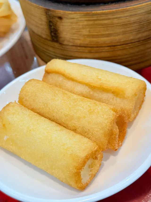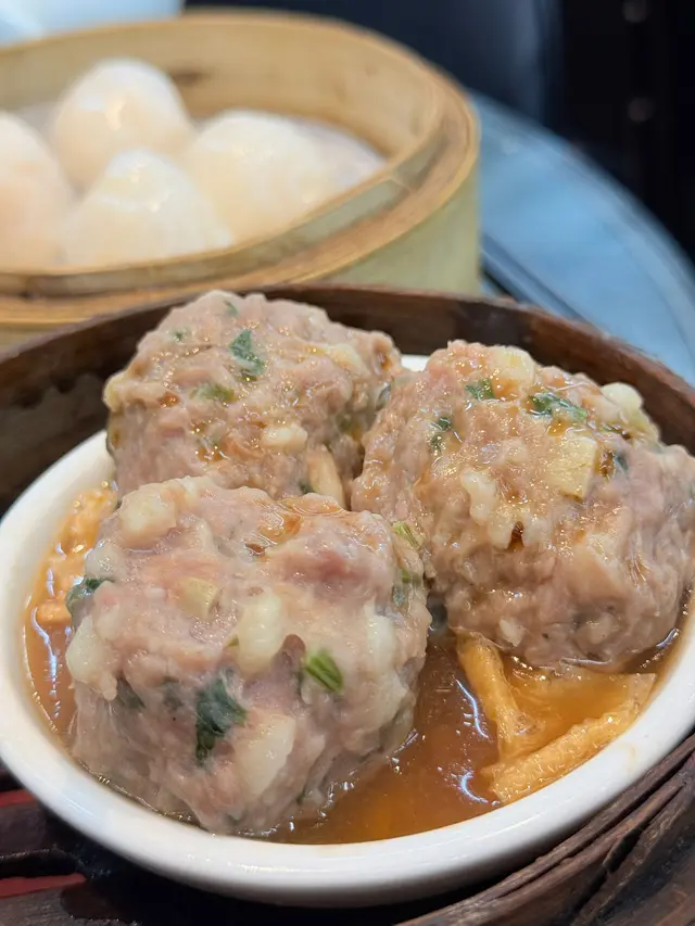 另一驚喜是看似平凡的「傳統燒賣」,這道點心最見師傅功力。豬肉餡選用脢頭肉,肥瘦比例恰到好處,手切保留肉質口感,拌入鮮蝦粒與香菇末。咬開瞬間,肉汁在口中綻放,外皮薄而帶韌性,頂部以蟹籽點綴增添口感層次,實在令人回味無窮。