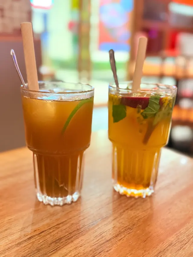 飲品都好有特色!喵女叫咗杯「長氣嫲嫲」,即係熱情果羅勒茉莉茶,飲落酸酸甜甜好清新,羅勒味好夾,好驚喜!🍹 喵仔就試咗「爆打鴨屎檸檬茶」,茶底好香,加埋手打檸檬嘅清香,解渴又解膩,食完啲濃味嘢飲返啖即刻爽曬!
