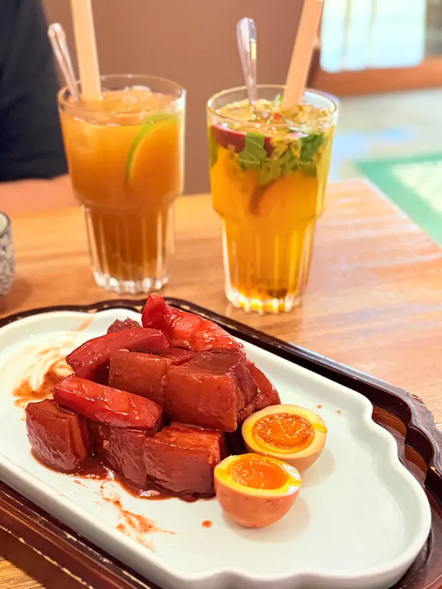 呢個紅燒肉不得了!啲豬肉炆到超腍滑,肥瘦均勻,入口即溶,個醬汁甜甜鹹鹹好惹味,完全係白飯小偷啊!🍚 旁邊隻流心蛋切開,啲蛋黃漿湧出嚟,撈埋啲肉汁一齊食,邪惡感十足!