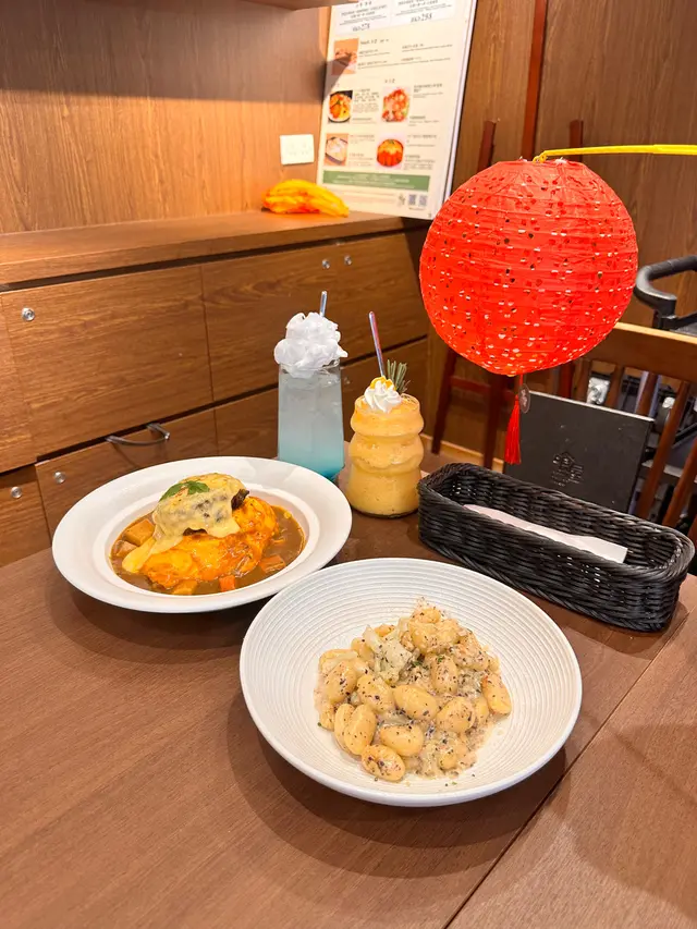 漢堡扒上有熱溶的芝士,切開有熱騰騰有肉汁,選了日式咖哩作醬汁,加上軟滑蛋包飯,吃得飽之餘又不會油膩。