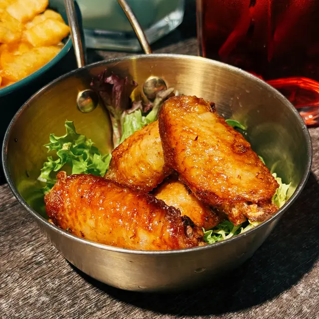 雞翼炸到脆身,掃咗花蜜醬,甜中帶微鹹,有肉汁。