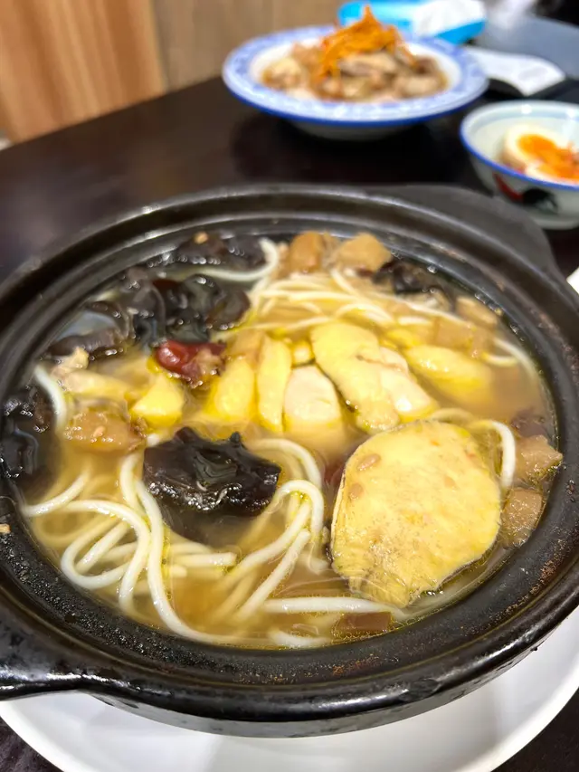 熱辣辣嘅砂煲,上枱嘅時候仲滾緊。一飲落去已經飲到好濃嘅雞味同酒香味,味道好濃郁,餘韻帶甜,配埋米線食啱啱好。另外仲有其他配料:雲耳、紅棗等,感覺上好滋陰。雞件幾有驚喜,除咗係髀位,肉質都唔錯。唔老唔嚡不在話下,仲有啲彈性。小編食過咁多間雞湯米,呢間算認真唔錯。