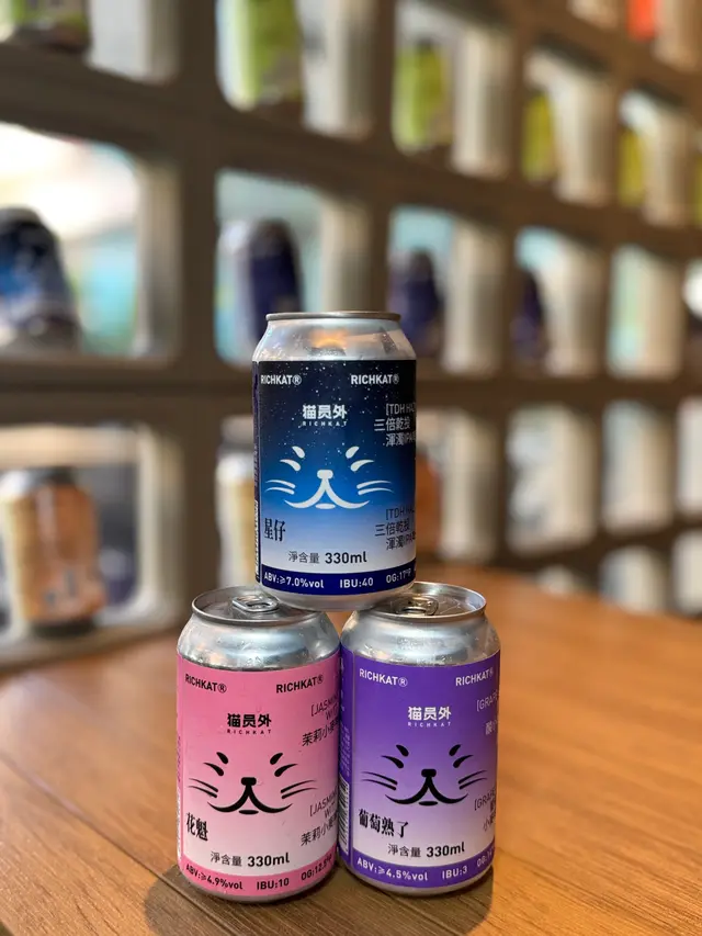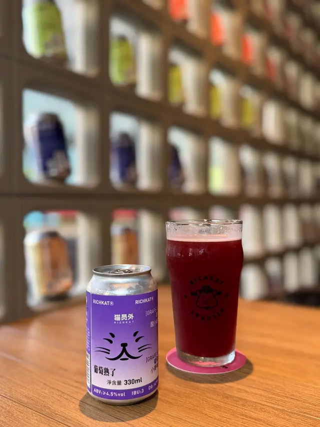 RICHKAT貓員外獨家研發同埋生產的手工啤酒,包裝以貓貓為主題,好可愛。手工啤酒曾獲得多項國際獎牌,而葡萄啤酒以柏林酸小麥為基底,加入咗大量葡萄汁,容易入口,帶有果味同埋酸甜口感,氣泡感十足。