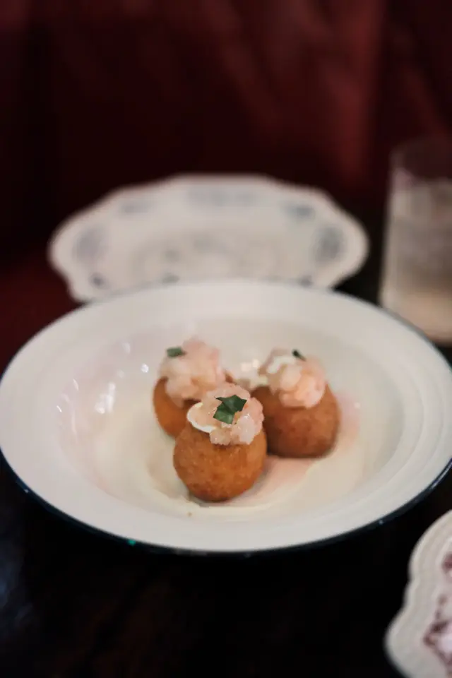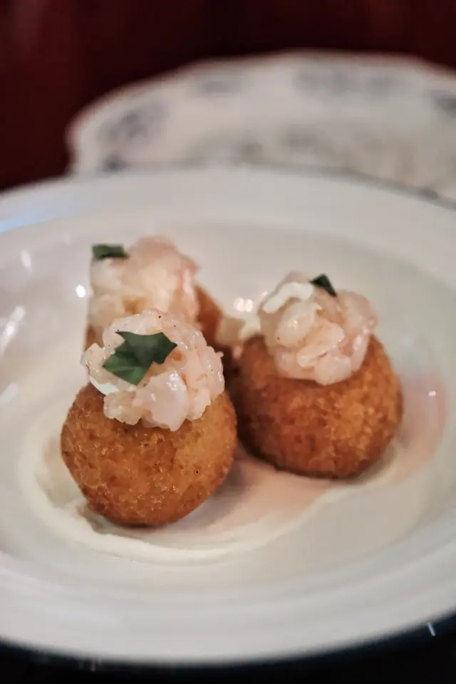 三粒薯球賣相精緻,蝦肉粉嫩新鮮😍薯球外皮炸得金黃酥脆,表面放上細碎蝦肉他他,底部襯有少許忌廉😍入口時薯蓉、蝦肉同忌廉嘅味道完美融合~薯蓉質地綿密細滑,帶有豐富嘅薯香,口感層次分明,開胃一流 👍🏻