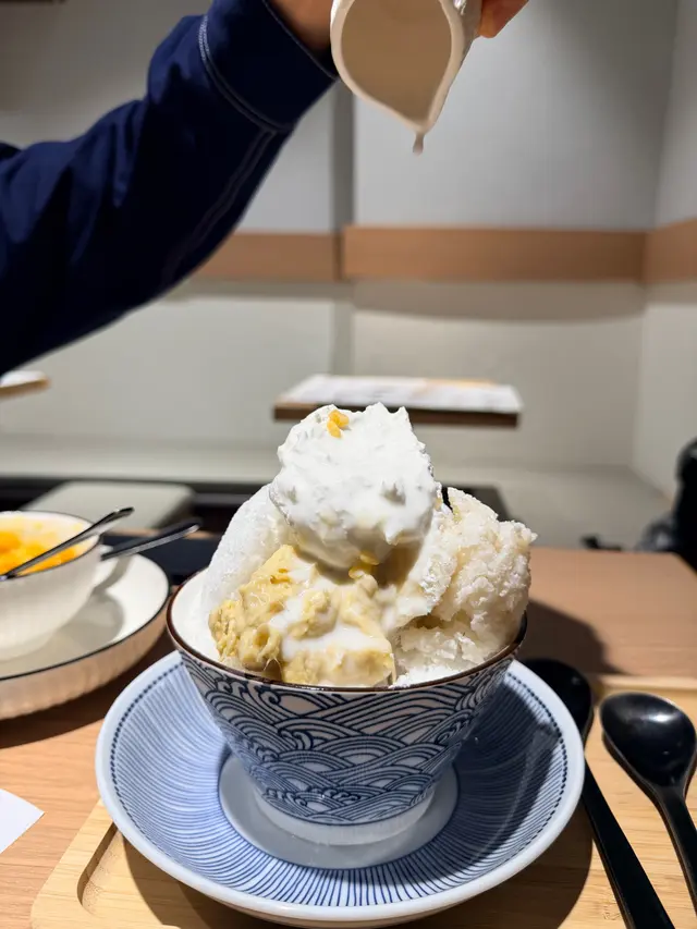 店員即場用芒果汁炒成冰磚再刨製,過程好似看表演~入口綿密到似雪糕,濃濃芒果香加上真實果肉,搭配煙韌麻糬同脆脆,口感層次爆燈!真心透涼首選💛