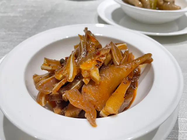 先來到小食泡椒雞腳和麻辣千層峯,爽口的雞腳與泡椒融匯一起;千層峯即豬耳仔,麻辣爽脆。