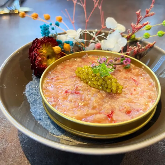 店員把木盒打開煙霧彌漫,煙霧慢慢散去後,紅蝦他他配綠寶石魚子醬就呈現在眼前💚 綠寶石魚子醬產自南中國海,魚子醬稀少而味道特別鮮美,與鮮甜的紅蝦他他和底層是Burrata芝士和南瓜蓉,一口充滿海洋的滋味🌊 絕對是視覺和味道的雙重享受🥰