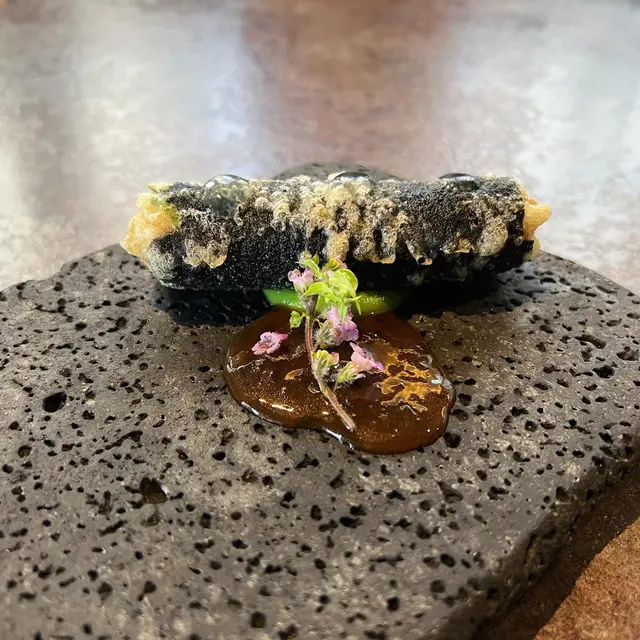 阿拉斯加蟹肉紫菜卷,外層香脆,裡面是多汁而鮮甜的蟹肉🦀 頂部加上少許檸檬啫哩和西蘭花蓉🥦 紫菜和蟹肉的配搭像天婦羅一樣,更有和風感覺🇯🇵