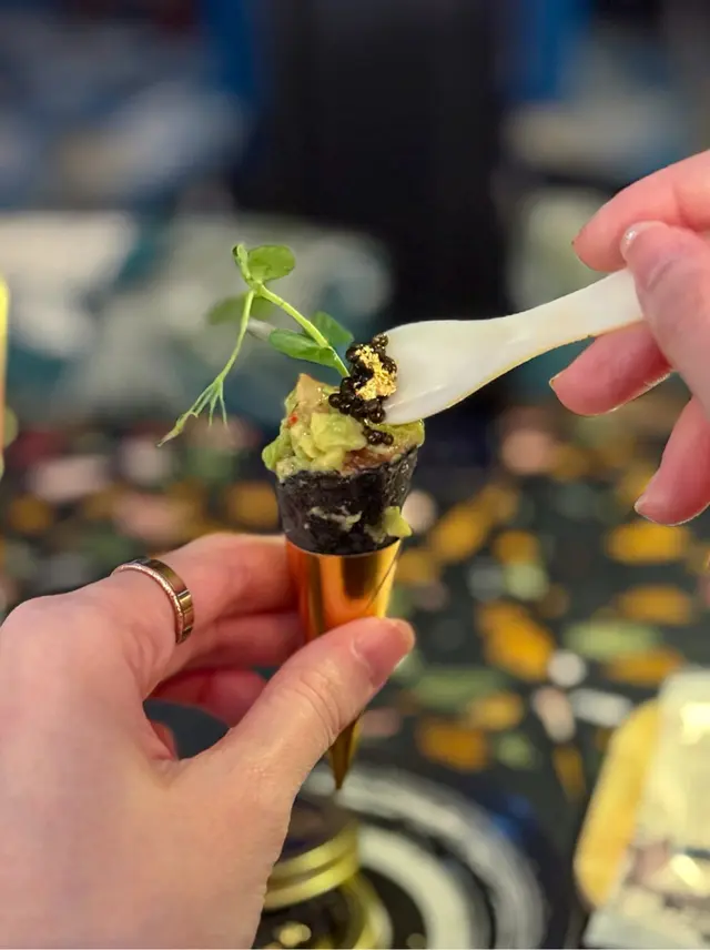 小甜筒賣相精緻 ✨,頂層鋪上魚子醬,鹹鮮味濃;底層牛油果醬清甜滑順。魚子醬控一定會超滿足!
