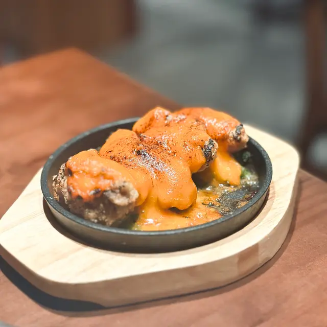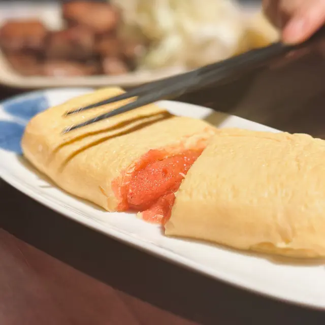 考驗板前基本功的菜色。蛋卷層次分明,濕潤度控制得宜,明太子並非混入蛋液而是做成中心夾心,每口都能咬到爆漿的辛辣海味。若喜歡濃厚風格會很滿足,但建議與他人分食避免膩口。