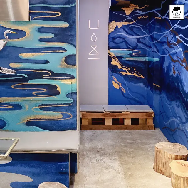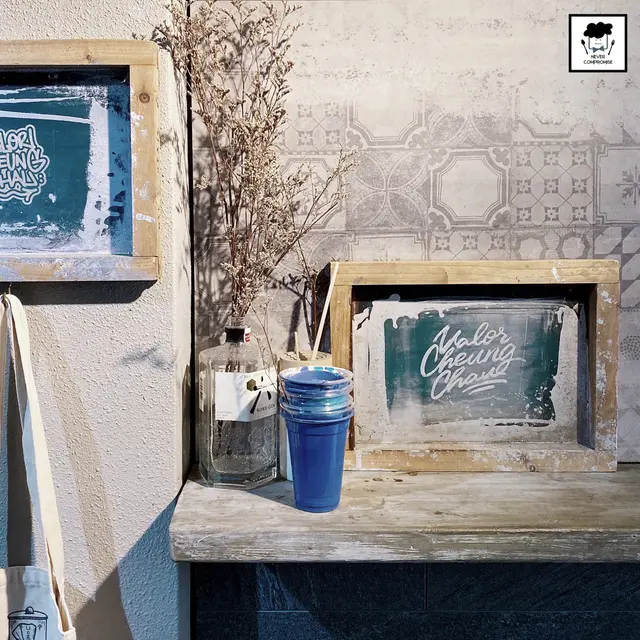 店內嘅真木櫈、冰滴咖啡壺、牆上面嘅藍色壁畫⋯絕對值得哂菲林影番幾張🎞️。壁畫由@bluestunnel_artwork 操刀,店家好有心思地將長洲張保仔洞作為壁畫嘅一部分。至於雲石門牌,雖然曾經俾途人整碎但修復後更有特色。