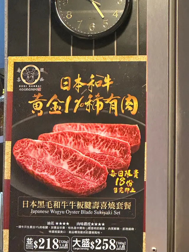 【關西風-高質和牛壽喜燒】 Szeatoomuch等级22025-11-06156 瀏覽 關注 銅鑼灣人氣壽喜燒店「壽喜・關西」,日式氛圍滿滿!今次專誠帶好愛食壽喜燒嘅家姐去試吓~🥩 180g日本黑毛和牛牛板腱每日限量18份的「黃金1%」稀有部位,霜降紋理細緻均勻,肉質軟嫩中帶點筋感,裹上蘭王蛋液,入口滑順濃郁,層次豐富! 🥩 180g 肉眼壽喜燒油花分布均勻,肉質軟嫩細膩,在甜香的壽喜燒汁中輕涮幾秒,濃郁牛香在口中綻放!🍹 點埋白桃汁梳打和巨鋒提子梳打,果香清新自然,完美中和壽喜燒的濃郁,清爽解膩。估唔到下午四點都座無虛席!環境舒適,服務細心,整體體驗十分滿足!以上食評乃用戶個人意見 , 並不代表OpenRice之觀點。讚好分享【關西風-高質和牛壽喜燒】 壽喜・關西 https://s.openrice.com/QrLT0JXTV00檢舉 張貼 評分5味道4環境5服務5衛生5抵食用餐途徑堂食