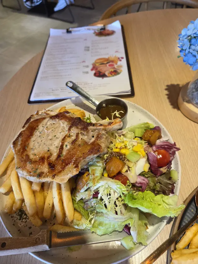 精準炭烤鎖住肉汁,表皮烙上誘人格紋,一刀切開粉嫩玫瑰色切面瞬間飄香!外層焦脆如蜜糖玻璃,內裡柔嫩到叉子輕壓便滲出肉汁✨