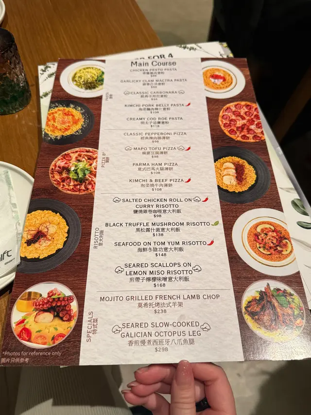 最後係今晚嘅 Highlight —— Seafood On Tom Yum Risotto ($148)!呢個 Fusion 菜真係不得不讚廚師嘅創意。平時食意大利飯多數係忌廉或者番茄底,呢度用咗泰式冬蔭功去做 Risotto,估唔到又夾到咁!飯粒煮得啱啱好,煙煙韌韌有咬口,每一粒米都吸飽咗冬蔭功嗰種酸辣鮮香嘅精華。海鮮方面都好足料,大蝦都好彈牙,蜆肉媒香,每一啖食落去,先係濃郁嘅 Creamy 口感,跟住冬蔭功嘅酸辣味慢慢滲出嚟,衝擊住味蕾,真係食到舔舔脷,非常出色!