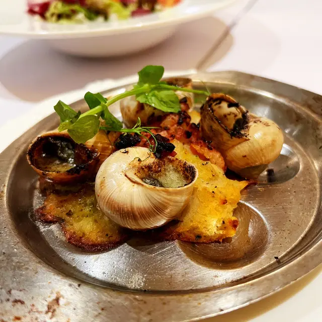 田螺的鮮甜和香料的香氣搭配在一起,創造出一種獨特的風味,田螺的口感軟嫩Q彈,而田螺的底是香濃黑松露香氣的薯蓉。