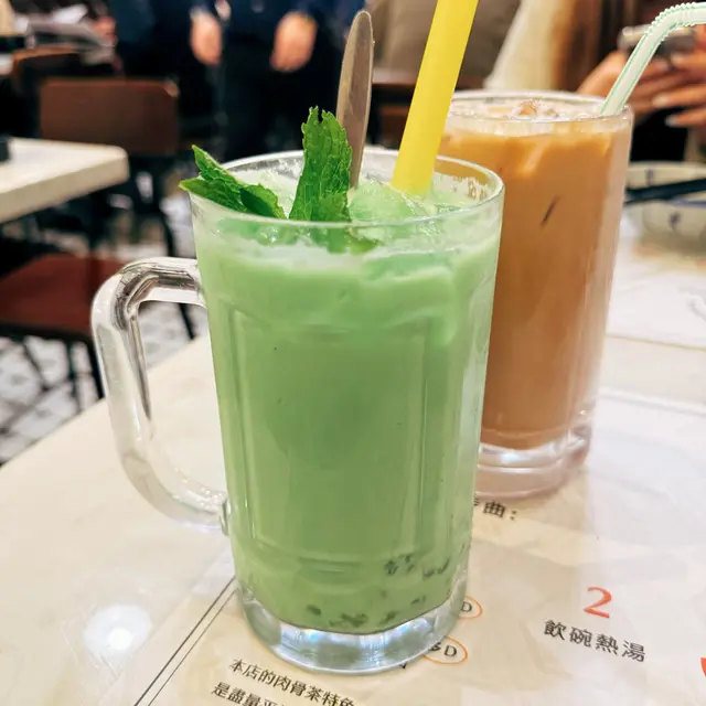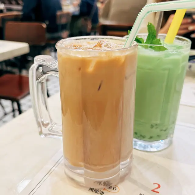 馬來西亞拉茶濃郁香甜,特飲椰汁斑斕冰清涼解渴,斑斕與椰汁的味道有很出。