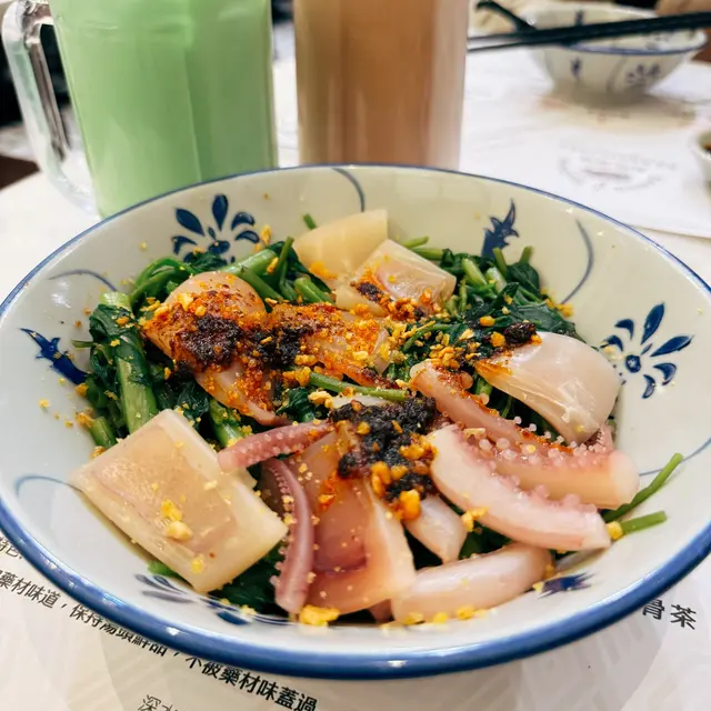 魷魚煮得恰到好處,口感嫩滑,搭配通菜的清爽及秘製醬汁,讓整到菜更惹味。
