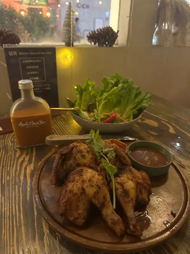雞肉外皮酥脆,帶有淡淡的香茅味。肉質鮮嫩多汁!🤩