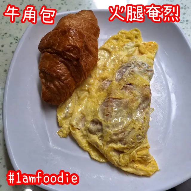 配菜佢係有「牛角包」同「火腿奄烈」,有牛角包唔錯,正常已經係好食。而火腿奄烈亦不過不失,生熟度合理,唔會煎得太老。嘢飲我揀咗「熱奶茶」,水準當然及唔上同區嘅金寶,但係已經係可以接受嘅水平,唔錯嘅。