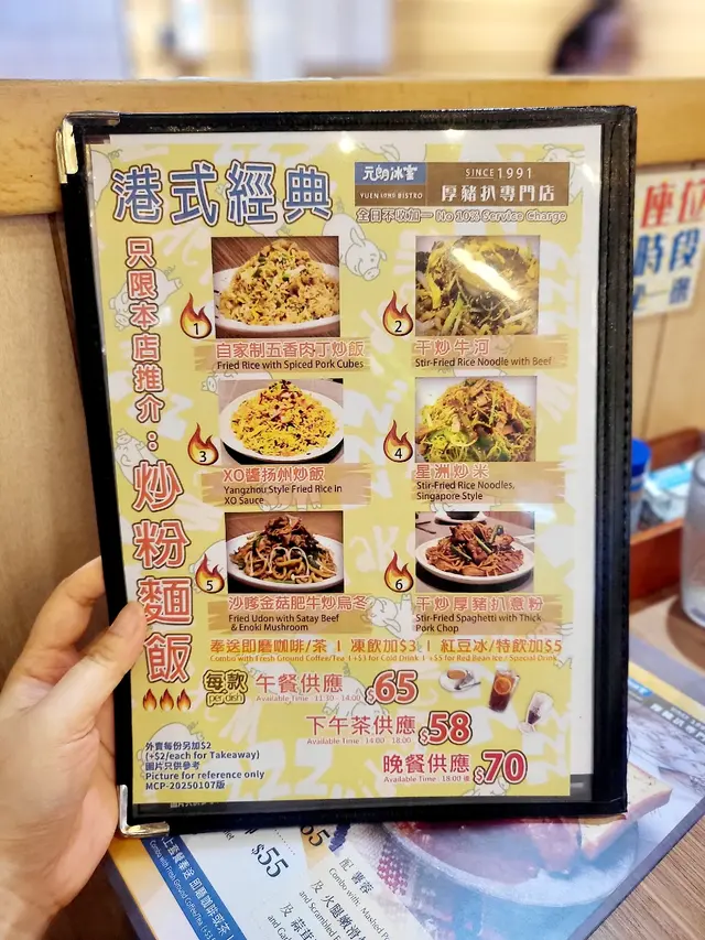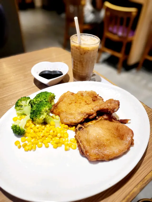 餐廳以厚豬扒作招徠,當然要一試,另外,餐牌上還有港式炒粉麵飯選擇。