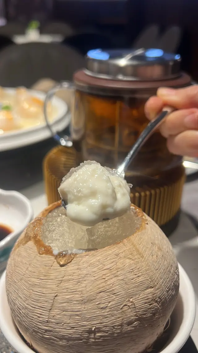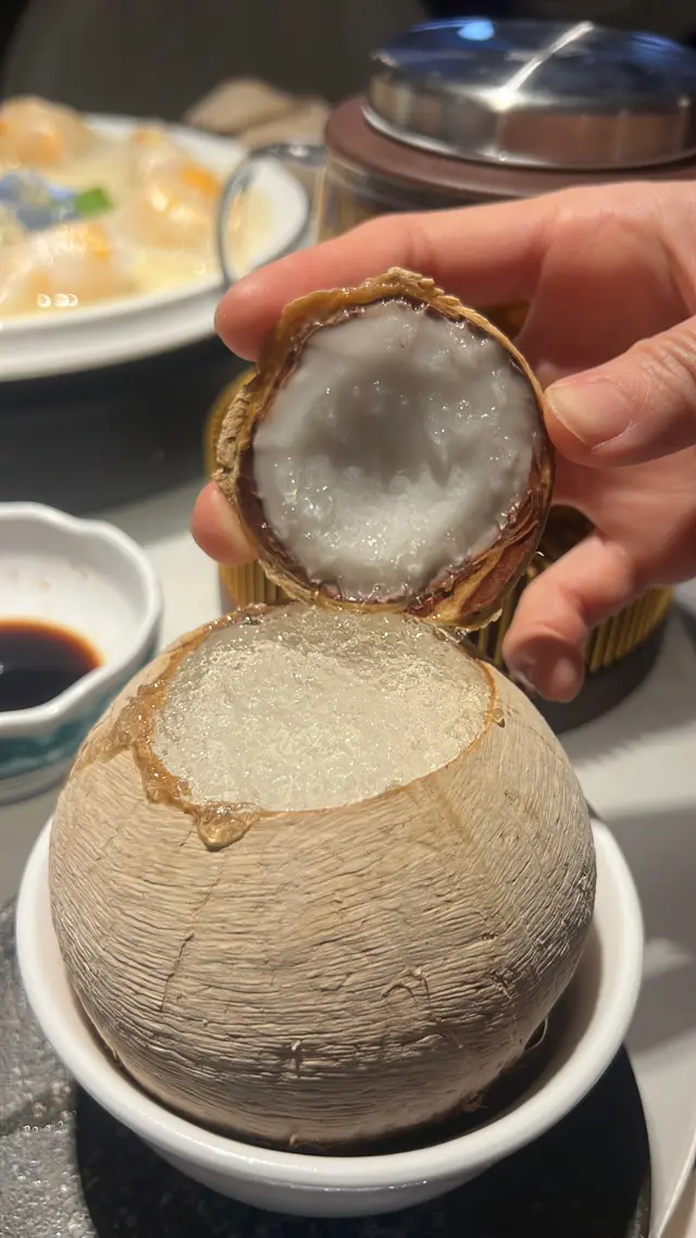 打開原個椰皇,雪燕舖滿晒漲卜卜咁,蛋白燉得幼滑奶味濃,我哋好鍾意❤️