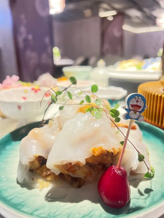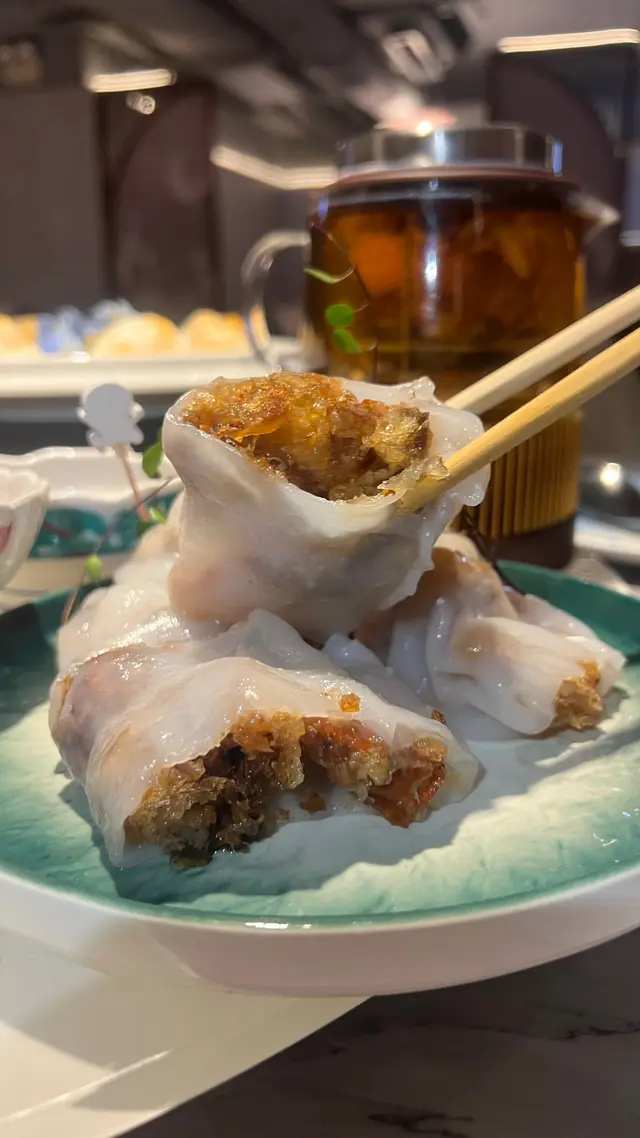 軟薄腸粉包裹著脆脆軟殼蟹,淋上甜豉油,外軟內脆😋