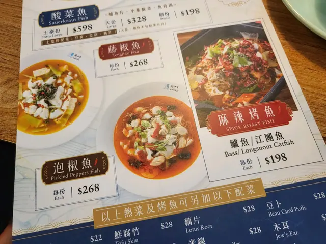 餐牌上酸菜魚的圖片非吸引,分了土豪份、大份及小份,更有多款自選配料選擇。