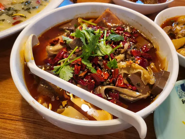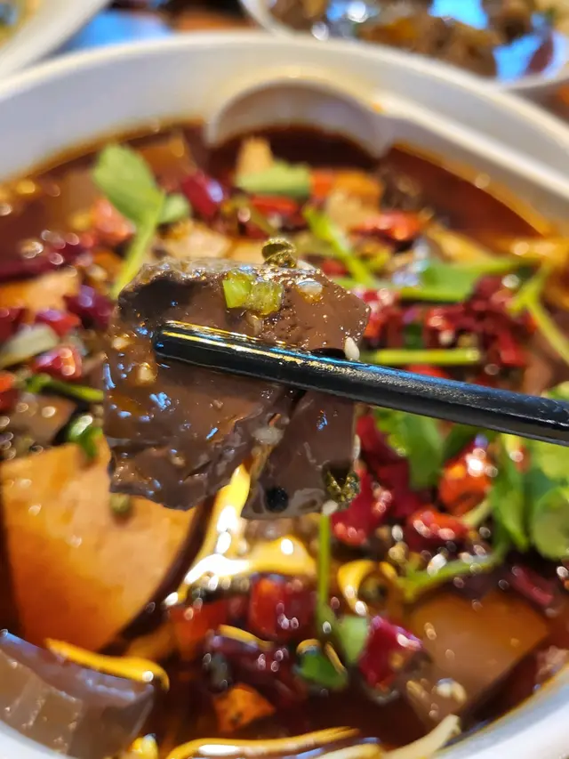毛血旺同樣是份量十足,集麻、辣、鲜、香特點,內容豐富,除了有大量口感嫰滑的鴨血、還有爽脆牛栢葉、鴨腎片、Q彈豬肚、豆芽、士豆片及青筍片等,但看賣相感覺好像很辣,但其實辣度並不足,反而麻辣香味較突出,色香味俱全,值得一試。