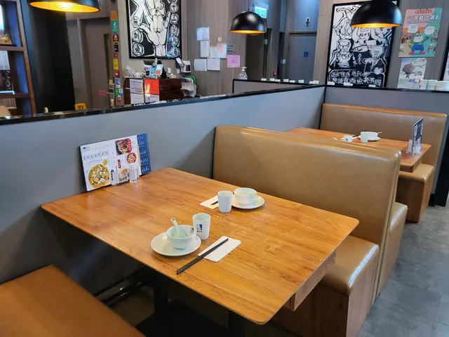 餐廳的佔地挺大,全店以木調為主,遠望去落地玻璃大窗,還有牆上掛上著黑白玩味漫畫。