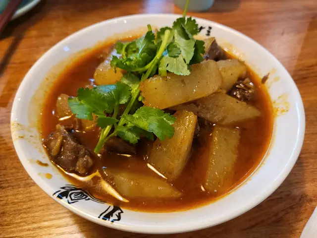 紅燒牛肉的味道較土豆燒排骨濃郁,湯汁帶有醬香,五香味突出,除了有牛肉的肉鮮味,還有點點辣味,牛肉有入口即化的口感,白蘿蔔吸收了滿滿湯汁,很好吃。