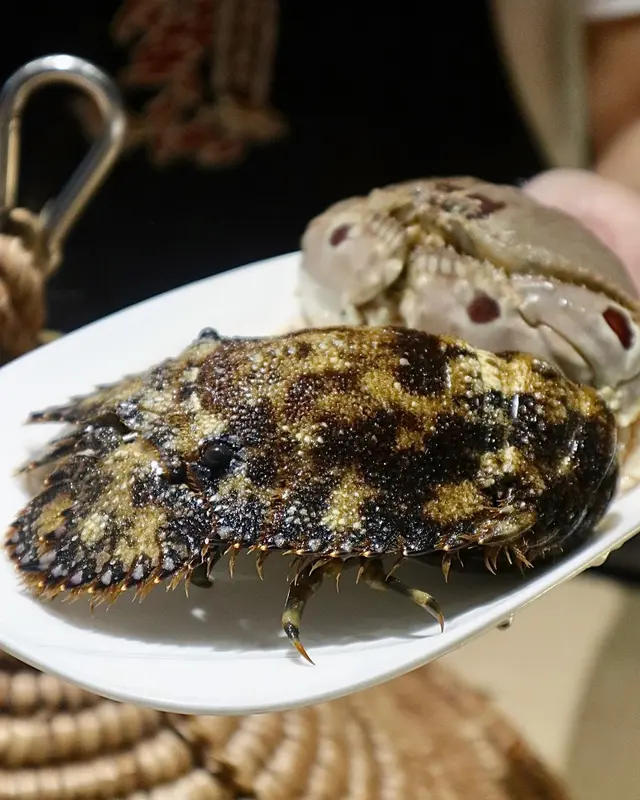 野生琵琶龍蝦面頭有絨毛好特別🦞 店員仲叫我哋摸下佢真係毛絨絨咁🤣 琵琶龍蝦好新鮮肉質爽口仲有天然海水鮮味🌊 食完之後仲可以將龍蝦殼放落粥底繼續煮~~太平洋饅頭蟹一年得兩個時段可以食到 難得今次有機會食到😎好食 其他海鮮都好正🥳
