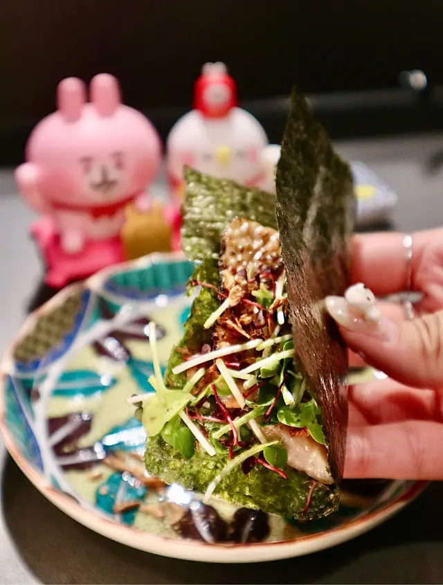 ✦ 燒過嘅吞拿魚腩 好肥美~而且燒過之後魚油味更加出 上面有啲野菜仲可以包住紫菜食❣️