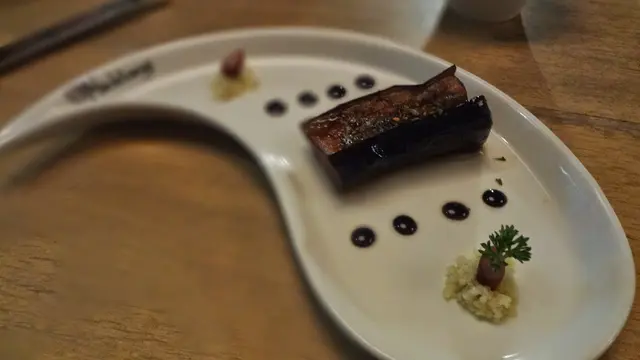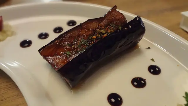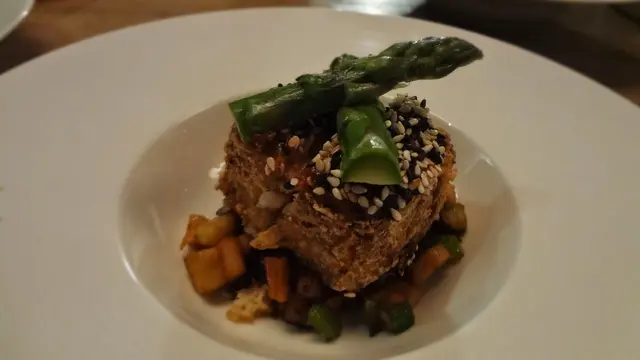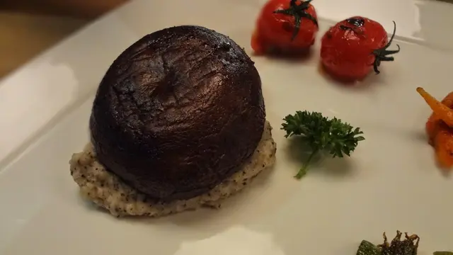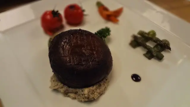 磨菇扒旁放了小甘荀、露筍、蕃茄仔等蔬菜
