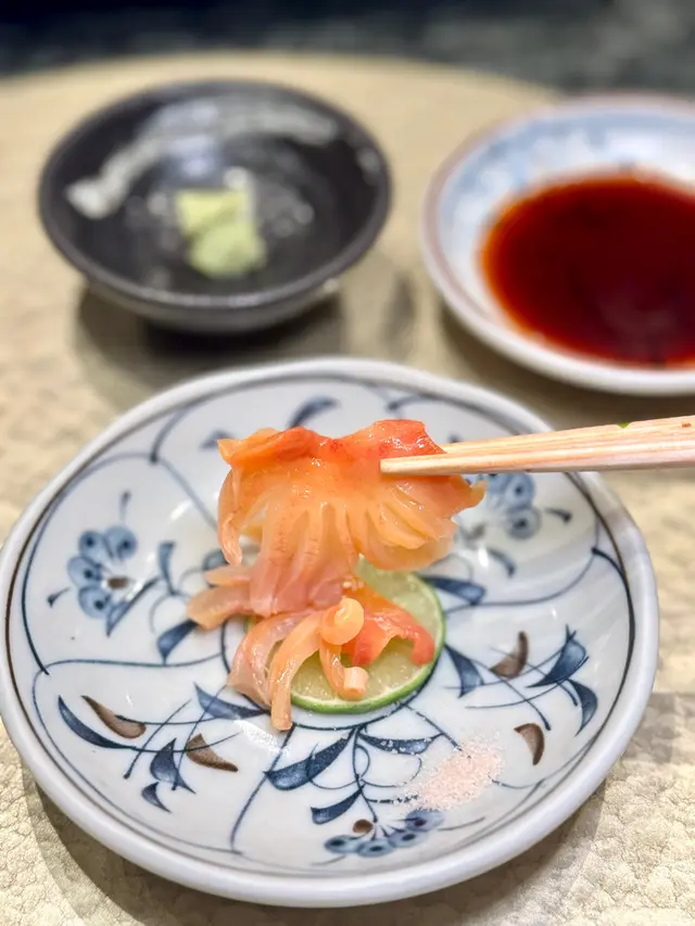 2️⃣ 赤貝刺身 赤貝處理得超乾淨,肉質脆卜卜,咀嚼時湧出清甜汁液,加少少柚子汁提鮮,清新感瞬間升級!