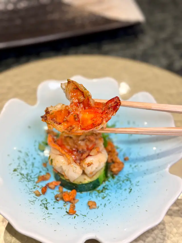 【🔥鐵板燒部分】 8️⃣ 沙巴虎蝦・蝦膏脆脆醬 虎蝦巨型到有成手掌長!鐵板煎到蝦殼香脆,蝦肉爽彈鮮甜🦐重點係個濃蝦膏醬,鹹香超邪惡~