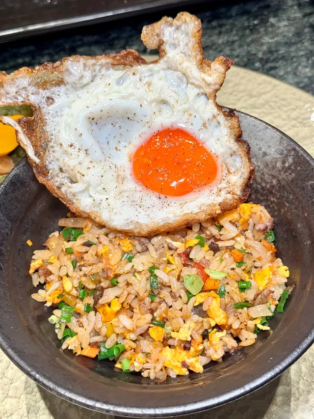 1️⃣3️⃣ 鐵板牛肉炒飯 炒飯鑊氣十足🍚牛肉粒夠嫩,飯粒分明唔油膩,仲有蛋香同蔥花加持,最後淋上秘製醬汁,同埋超靚嘅煎太陽蛋!忍唔住清晒成碗!