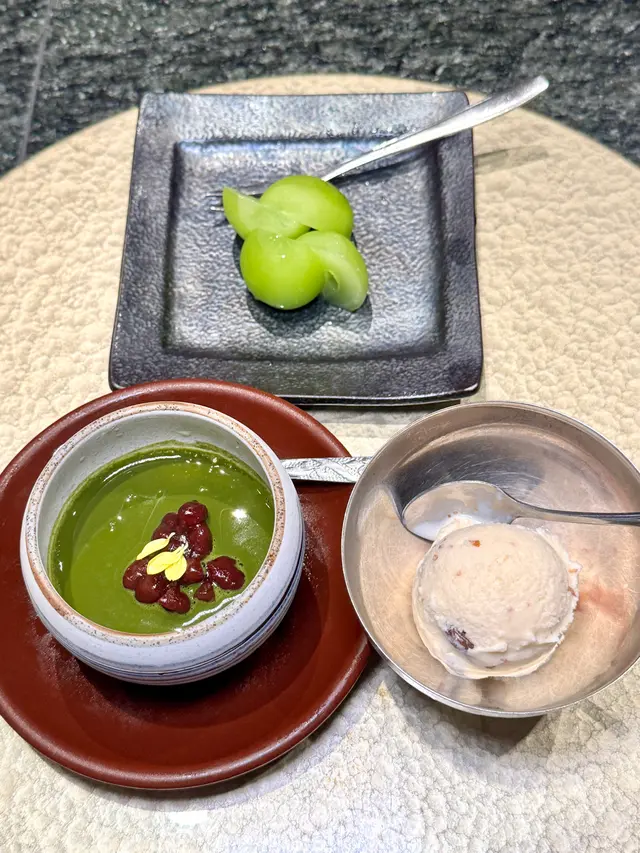 1️⃣6️⃣ 抹茶奶凍・日本提子・雪糕 抹茶奶凍茶香濃郁唔死甜。質地滑溜🍵日本提子爆汁清甜🍇雪糕香濃綿密🍨完美作結!