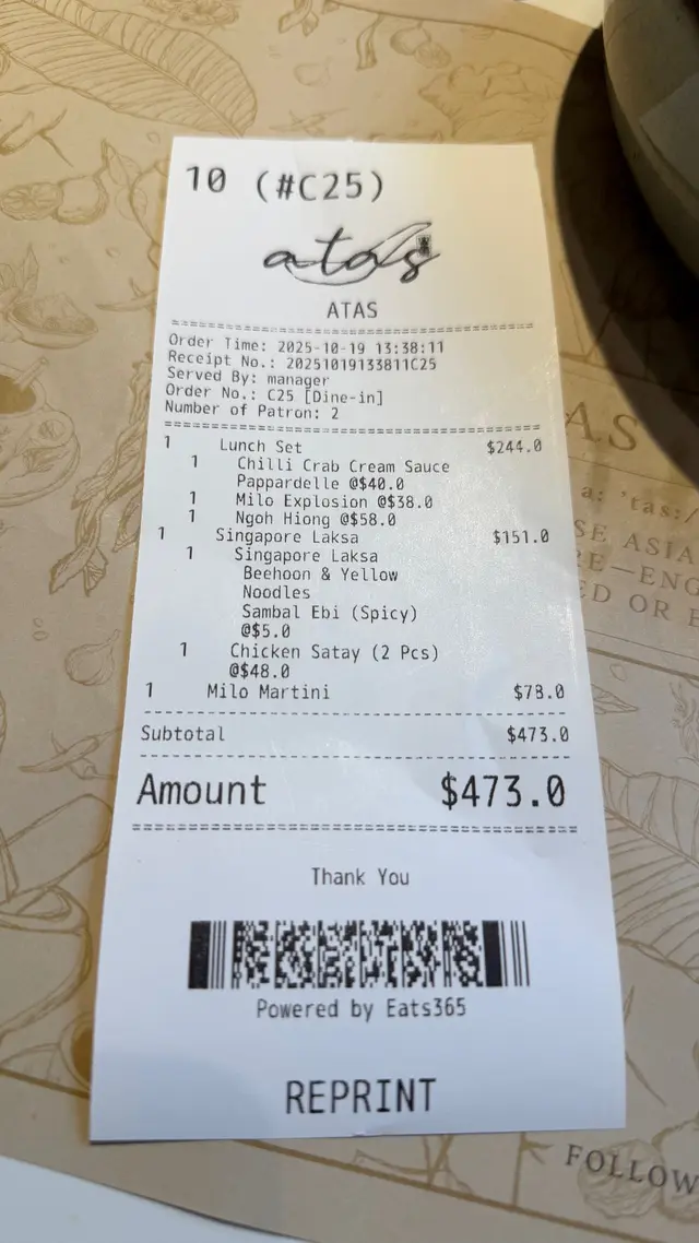 ATAS是SOPHISTICATED OR ELEGANT精緻優雅意思,從地下入口走上樓梯,有一種別有洞天的清新,餐廳間隔開揚,坐位與坐位間有空間感,適合食食野、減減壓嘅都市人呀!