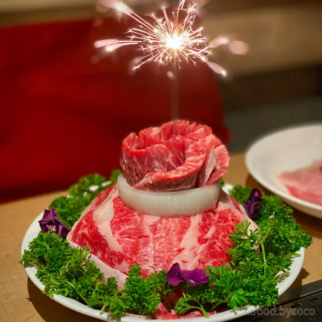 由牛三肋同牛小排堆砌成蛋糕形狀,燒之前仲會有支仙女棒,儀式感十足🥰慶祝生日一流唷‼️‼️