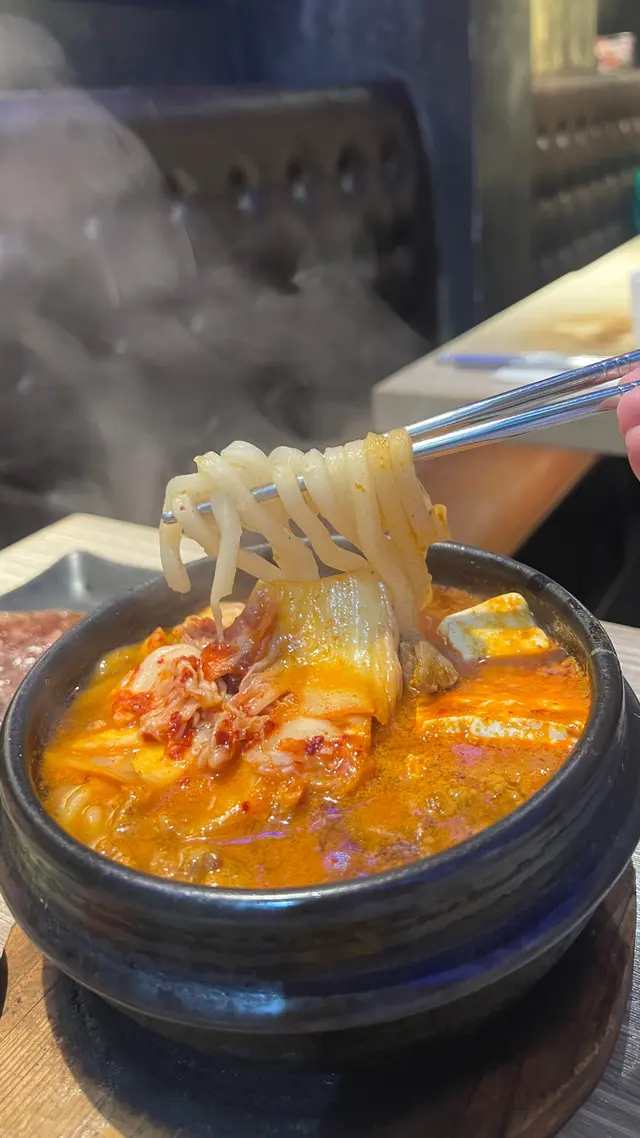 🪅泡菜豬肉豆腐湯鍋配烏冬|泡菜微辣、內有豬肉片、蛋、豆腐、烏冬,份量大。