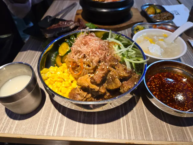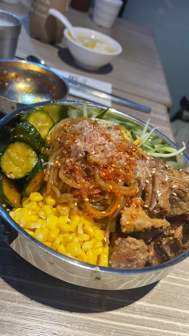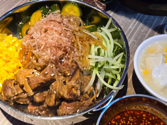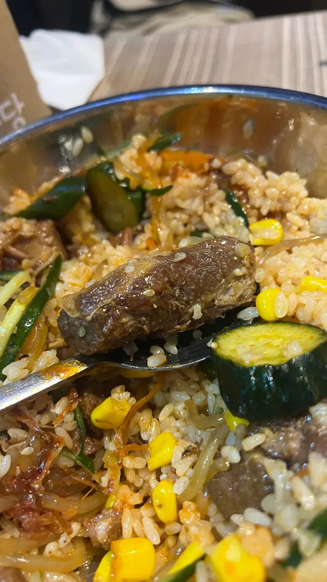 🪅牛肉粒韓式拌飯|金屬大碗巨人份量,牛粒調味水準高,燒燉肉質腍身有牛味,加特製醬汁將材料攪拌食,一個人難以挑戰清碗!