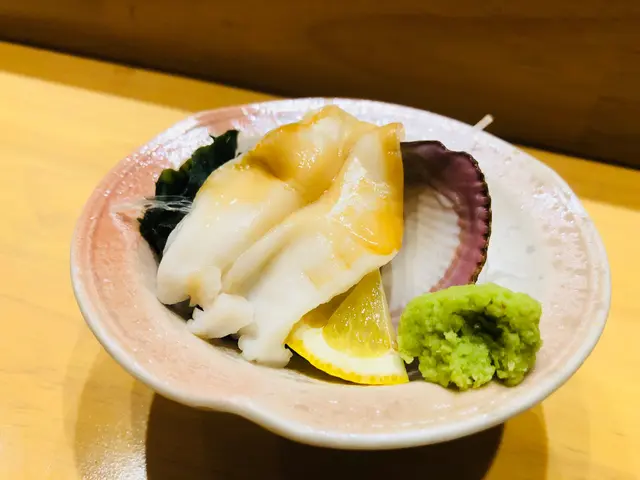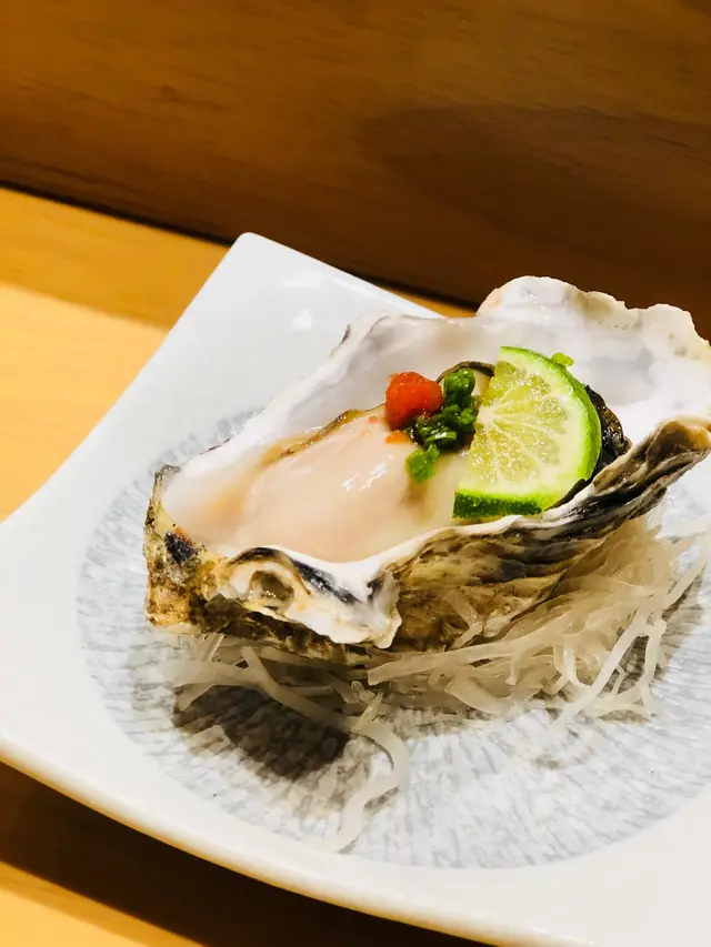 第五道刺身:珍蠔,蠔身圓潤、肥美,入口飽滿令人垂涎,軟糯的質感,盡是鮮甜。裙邊十分爽脆,吱上清檸汁,更加吸引。