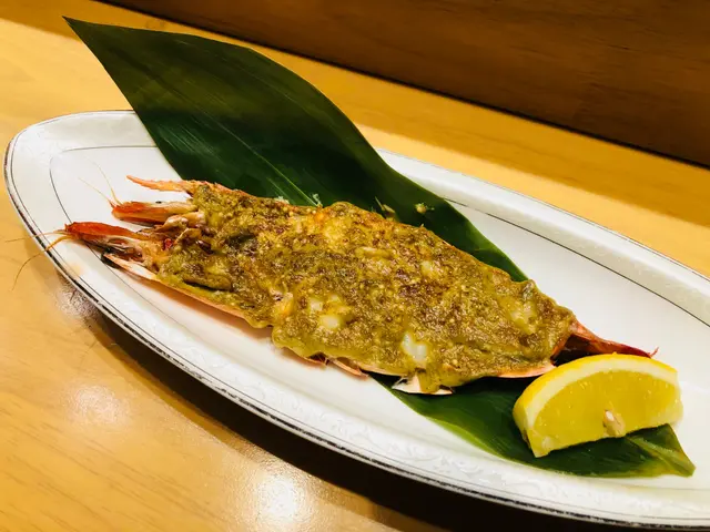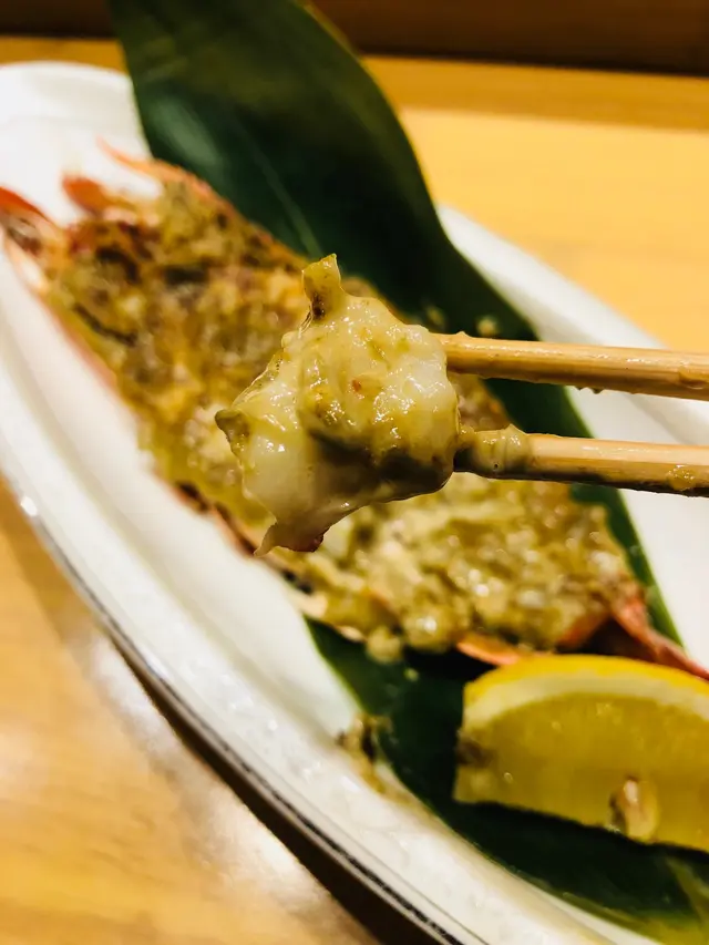 燒物: 蟹膏醬燒大蝦,即時製作,熱霧中散發誘人蟹膏鮮香。 大蝦表面填滿焦香蟹膏,蝦肉軟嫰,被濃郁的蟹膏完美包裹著,能一口品嚐滑溜蝦肉及惹味蟹香,真是雙重享受!