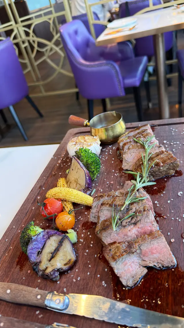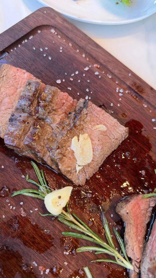 4成熟剛剛好,牛側腹肉味香濃,筋少易食,外層焦脆甘香,廚師切得整齊精巧,貼心方便節省客人午餐時間。欣賞一眾配菜蔬菜好焦香美味,秘制調味汁與牛側復好夾,重口味的我再點少量海鹽更帶出牛香味。