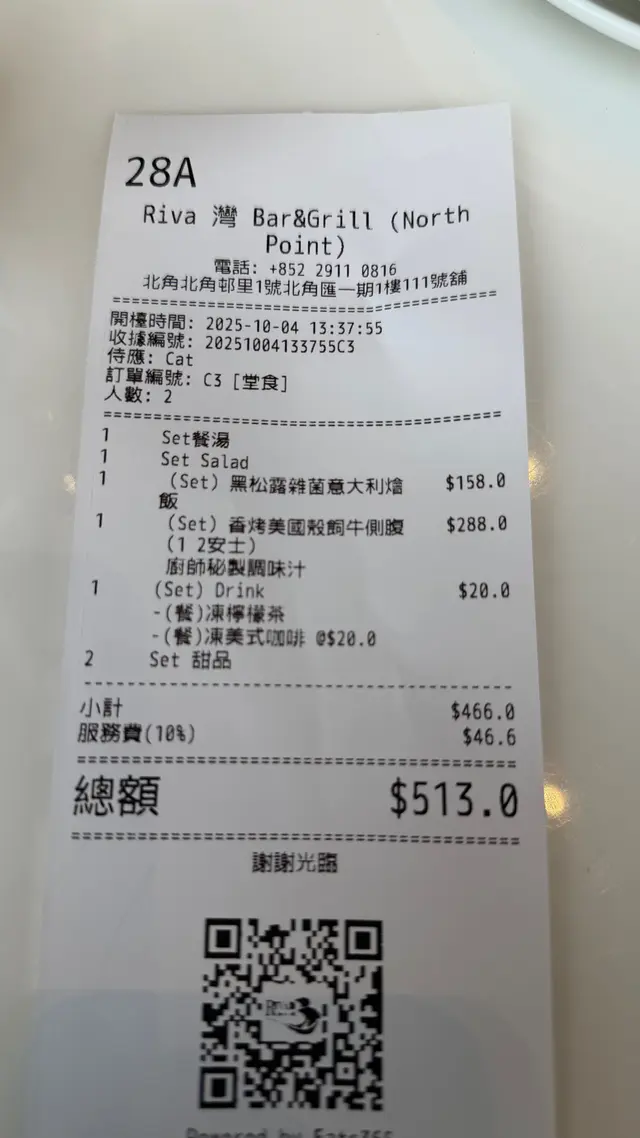 RIVA在馬灣有店,歷史悠久,系北角匯都有分店,秉承近海優勢,北角店大部分坐位都在窗邊,飽覽碼頭海景,感覺好Chill好嘆呀!