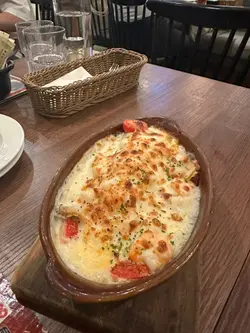 【忌廉汁海鮮焗意粉】白汁濃郁唔膩,海鮮份量足料,大蝦、青口、魷魚樣樣鮮甜,又係剛剛焗起再度加分!