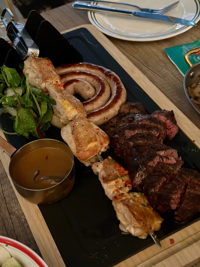 到來為我們點菜的都是只懂英語的女侍應,在這店跟侍應溝通看來要懂一點英語。店舖有駐場售賣啤酒的美女promoter,點菜後食物很快便送到,味道不錯但又不會給你帶來很大的驚喜,食物都是一般西餐廳的基本烹調手法,牛扒熟成度medium恰到好處,表面烤得焦脆的肉質嫩滑,值得一讚。