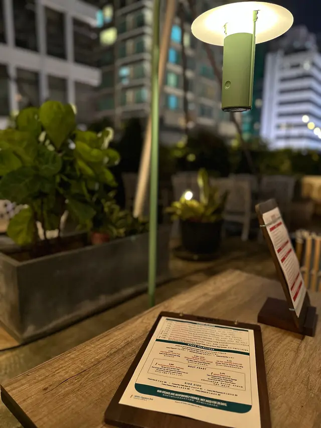 今天天氣有點涼快,我們選擇了坐在室外,幾個好友促膝談心,七點左右室外已坐了好幾桌客人,在帳篷下燈光顯得有點昏暗,輕快的音樂音量適中不會太嘈吵,熱鬧又有舒適感。