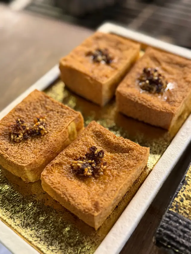 9. 炸豆腐加秘製醬汁 - 外酥內嫩的豆腐,淋上老闆的獨門醬汁,溫和而美味。